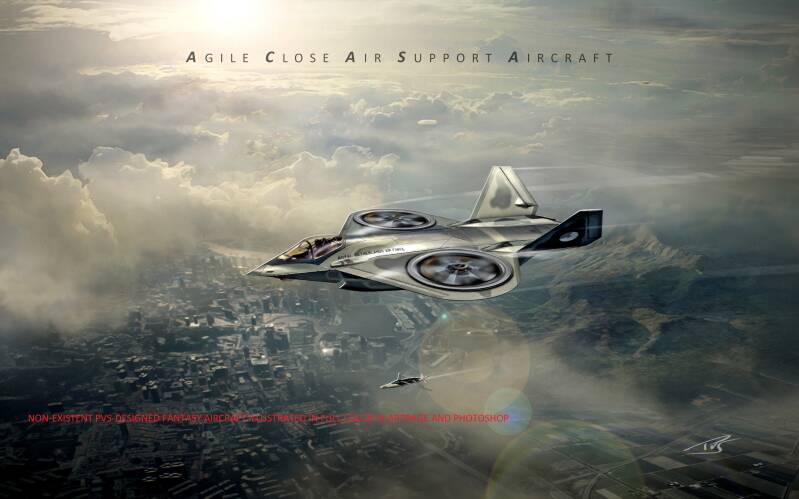 To top it all off and bring it all together, start producing a full-color illustration in which all aspects of shape and lighting according to the rules of 'perspective'. The sky is the limit. The artist is free to dream up any object. For example a fantasy aircraft as shown below, set in a dramatic background. All stitched together in order to bring your 'paper tiger' to life. Programs in this case used for this image are ArtRage for enhanced drawing and painting and Photoshop for initial drawing, painting, airbrush and filtering in tones and colors.