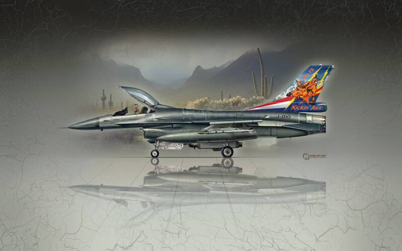 From a very young age, Peter van Stigt, born in Amsterdam in 1964, wanted to be a fighter pilot. However, his talents could not be found in Mathematics but in the artistic genes of his family. His father is his primary teacher in traditional art and graphic design. After an education at the Amsterdam Graphics College, Peter started out in the advertising world as a freelancer in 1986. Combining traditional art and his aviation passion was inevitable, and over the years, Peter focused purely on military aviation art. In 2005, he started teaching himself in the world of digital art. Since then, Peter has become one of the World’s leading digital aviation artists. Every now and then, he still draws and paints in the traditional way.